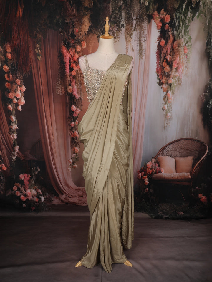 Light pink sarees, pastel peach, and ivory sarees are trending for brides seeking a softer, contemporary vibe. These trending saree styles are perfect for receptions and pre-wedding events.