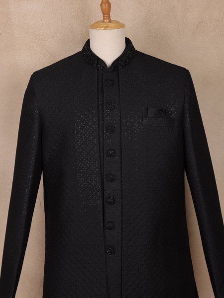 Command attention in no time with our black designer sherwani for men, tailored for those who dare to make a statement at every gathering.