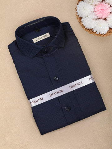 Blue Plain Full Sleeve Cotton Shirt - Diadem