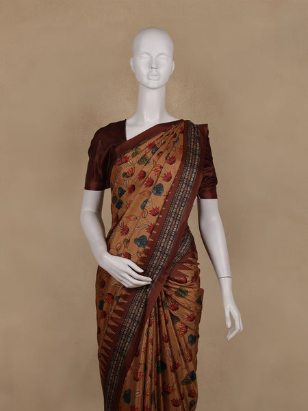 Brown Floral Design Semi Tissue Silk Saree - Diadem