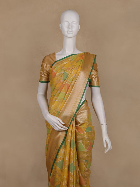 Mustard Yellow Floral Design Tissue Saree - Diadem