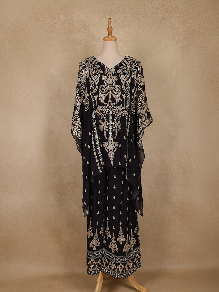Black Floral Designed Cotton Salwar Suit - Diadem