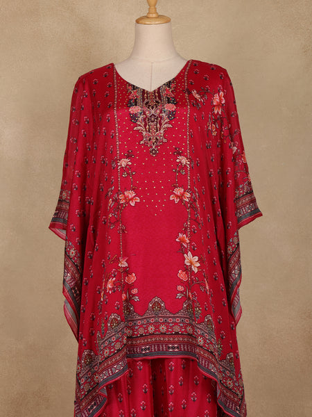 Dark Red Floral Designed Straight Cut Salwar Suit Online - Diadem