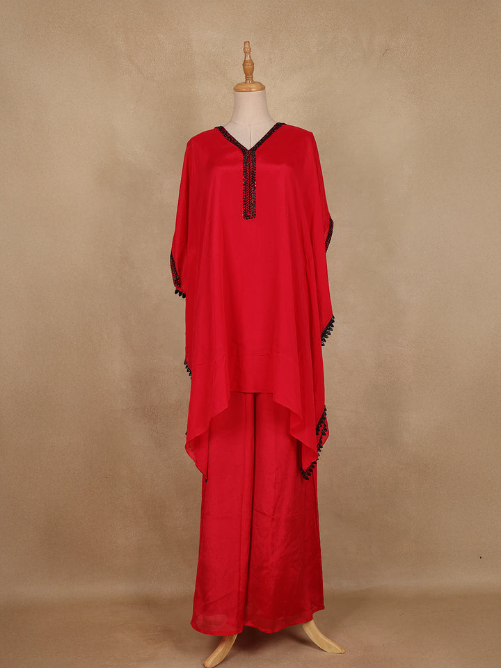 Red Floral Designed Cotton Salwar Suit - Diadem
