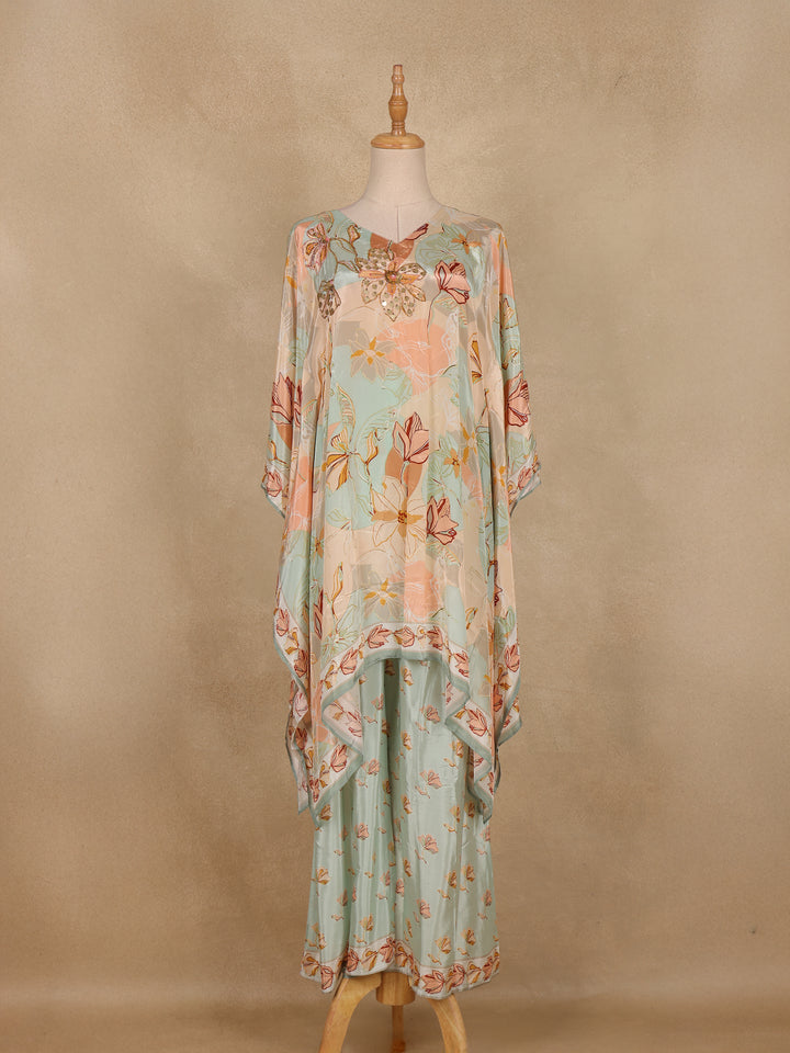 Multicolor Floral Printed Semi Silk Salwar Suit - Diadem
