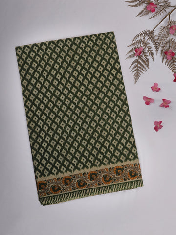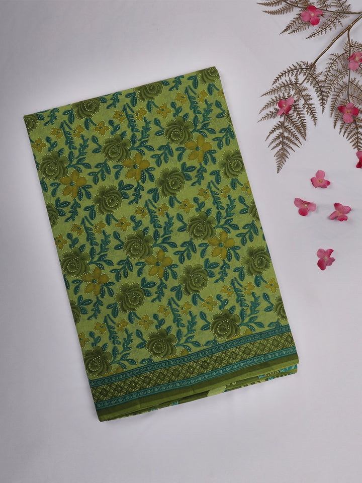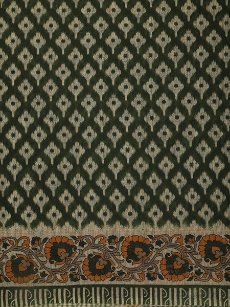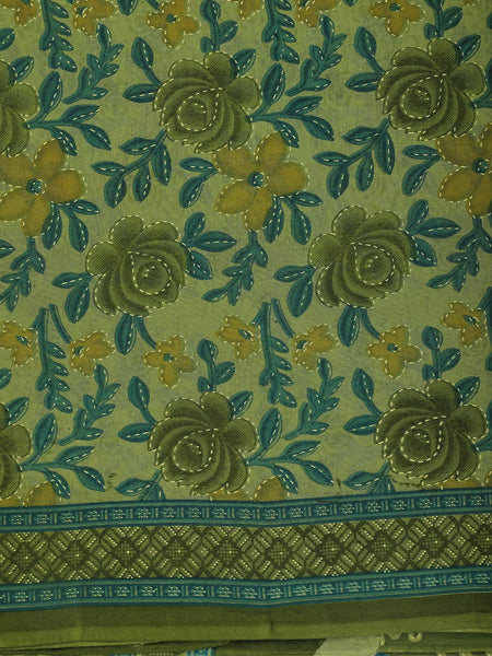 Olive Green Silk Cotton Saree with Flower Motifs Design on the Body with Contrast Border - Diadem