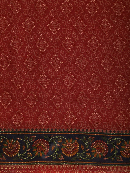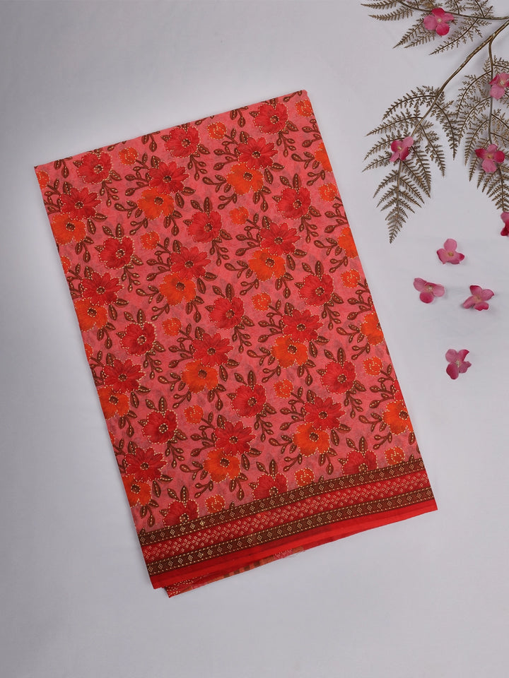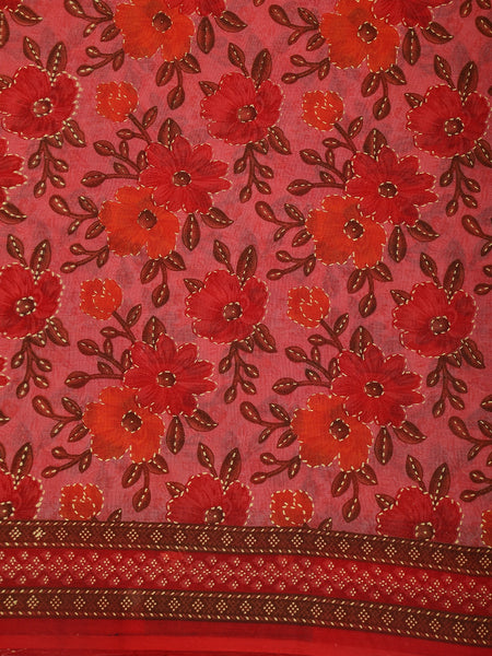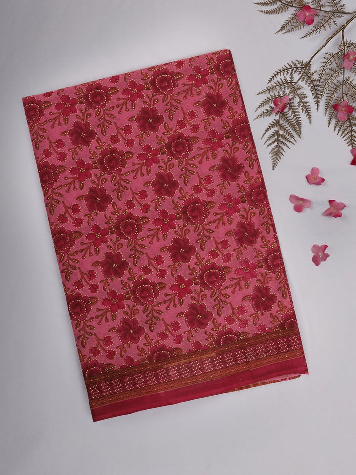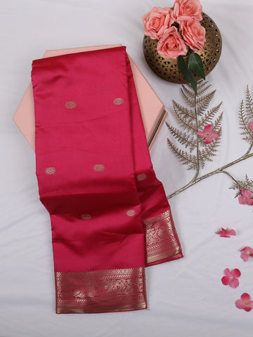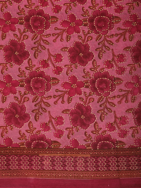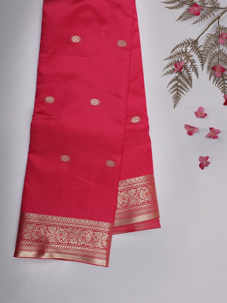 Red Pink Semi Silk Saree with Checked design on the body and Contrast Zari Border - Diadem