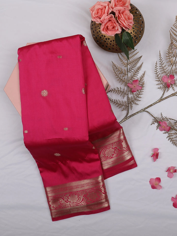Peach Arani Silk Saree with Zari Butta on the body and Contrast Zari Border - Diadem