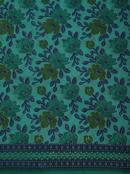 Sky Blue Floral Designed Cotton Saree - Diadem