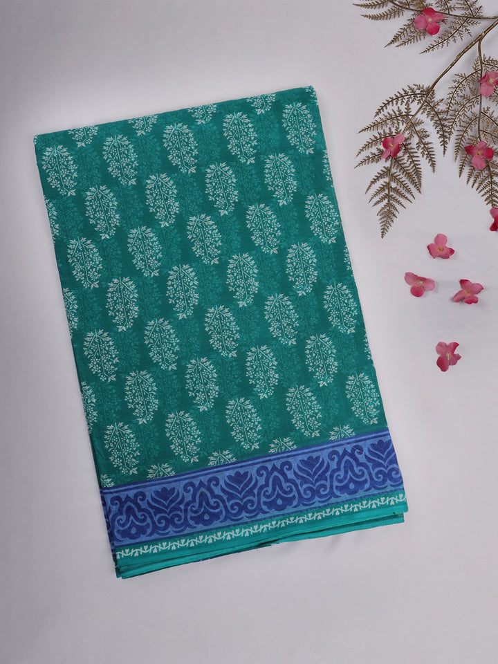 Aqua Green Art Silk Saree with Leaf Motif on the Body with Designed Border - Diadem