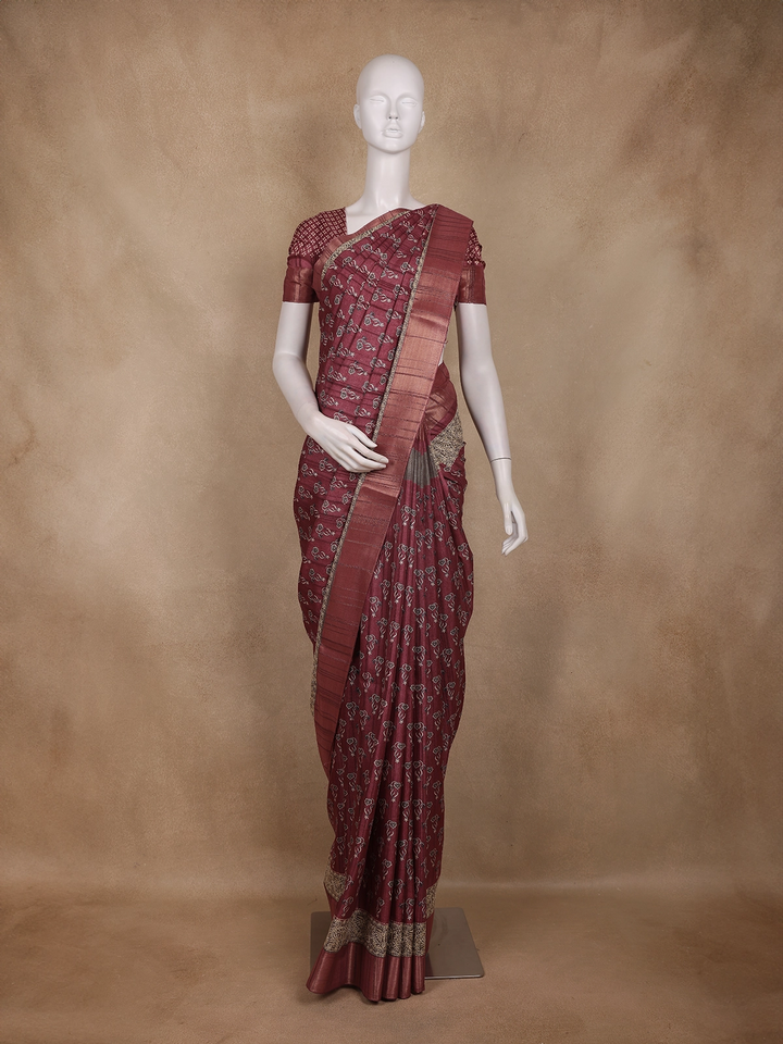 Shop conveniently online or visit our store in T Nagar, Chennai, to explore the best Tussar silk sarees (Semi Tussar silk sarees).