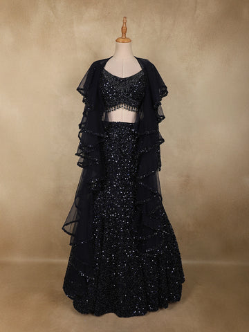 Georgette is a lightweight and flowy fabric, perfect for creating graceful silhouettes and adding a modern and unique bridal lehenga vibe.