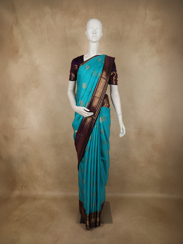Teal Green Floral Butta Art Silk Saree - Diadem