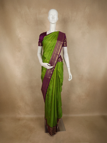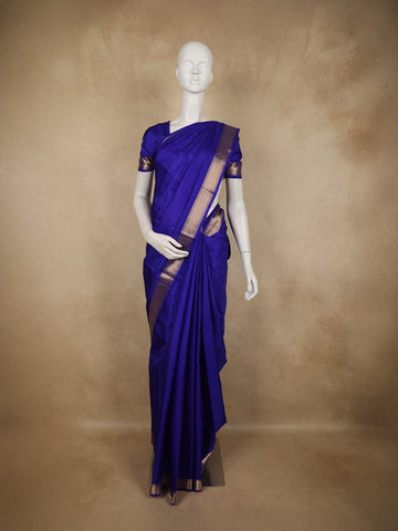 Violet Floral Motifs Pure Kanchipuram Silk Saree - Diadem