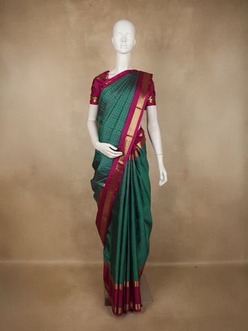 Red Checkered Woven Pure Kanchipuram Silk Saree - Diadem