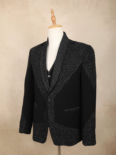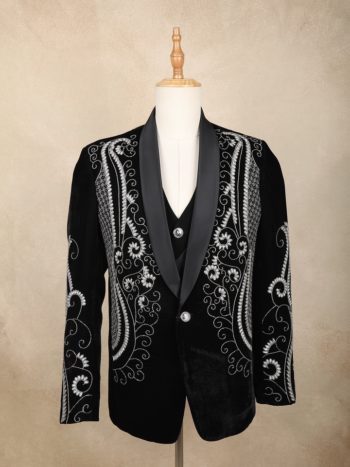 This type of wedding dress for males boasts lavish embroidery and intricate detailing, crafted from premium jacquard, raw silk, and silk fabrics.