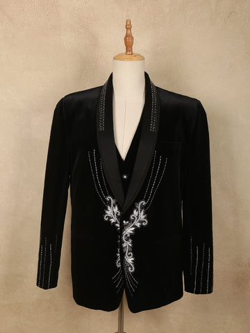 Dark Green Floral Embroidery Men's Suit - Diadem