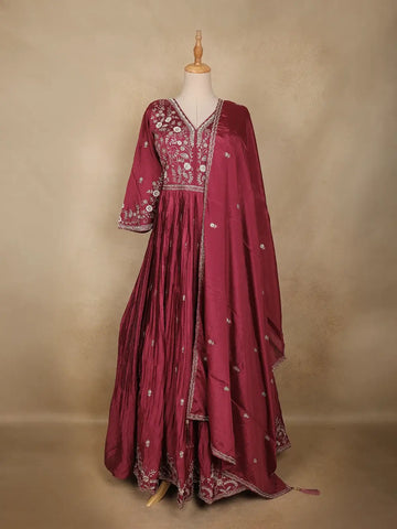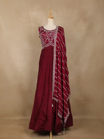 Maroon Floral Designed Anarkali Georgette Gown - Diadem