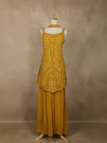 Mustard Yellow Floral Sequins Embroidery Palazzo Suit - Diadem