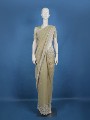 Olive Green Floral Embroidery Organza Saree - Diadem