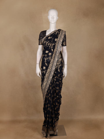 Black Sequin Worked Georgette Designer Saree - Diadem