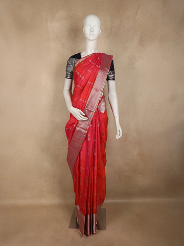 Red Checkered Woven Pure Kanchipuram Silk Saree - Diadem
