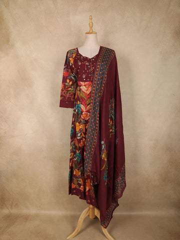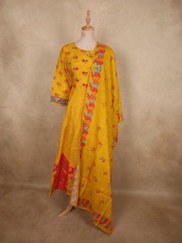 Yellow Floral Designed Cotton Rayon Anarkali Salwar Suit - Diadem