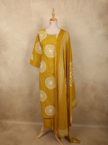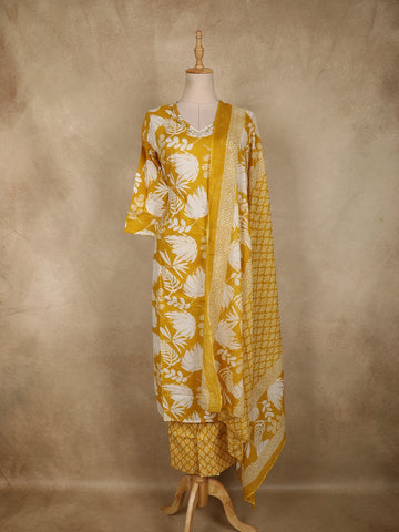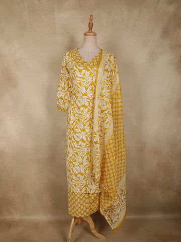 Yellow Floral Designed Cotton Salwar Suit - Diadem