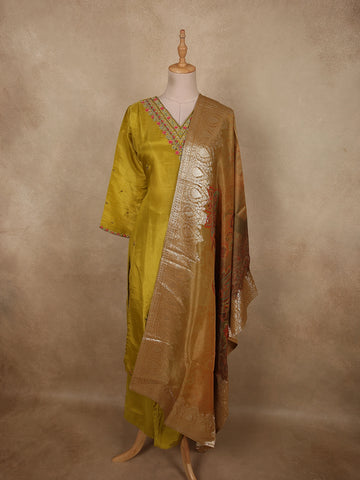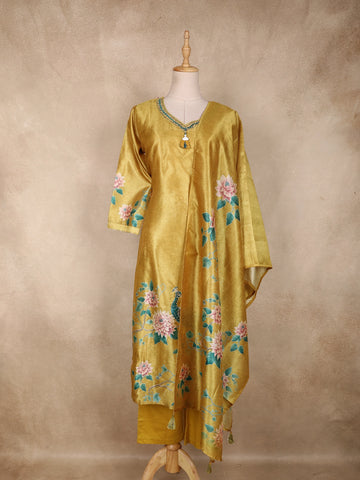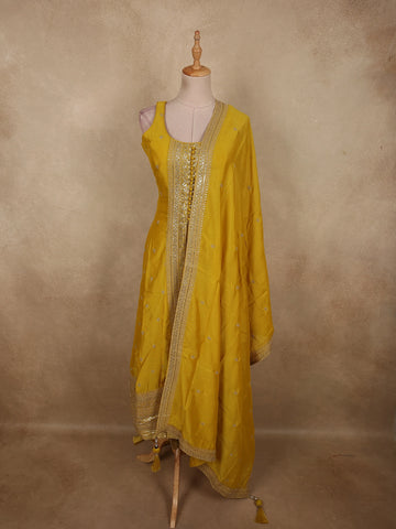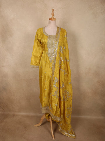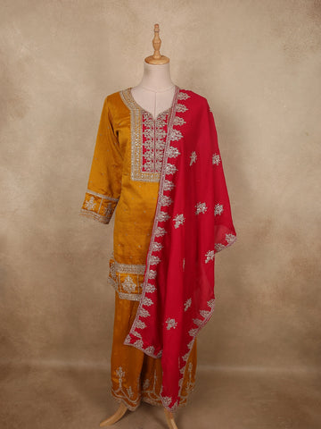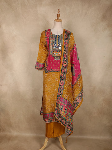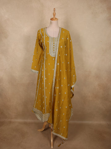 Mustard Yellow Semi Silk Embroidery Salwar Suit - Diadem