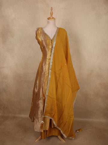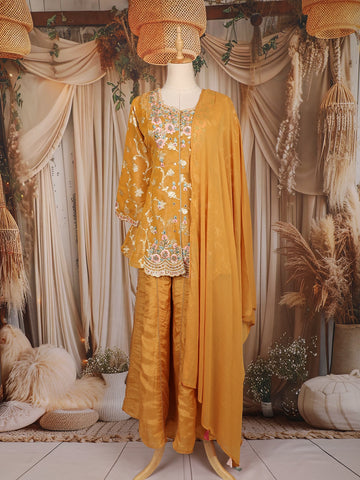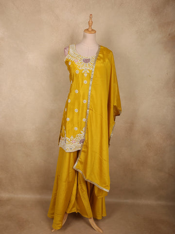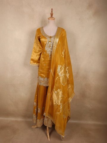 Mustard Yellow Floral Sequins Embroidery Palazzo Suit - Diadem