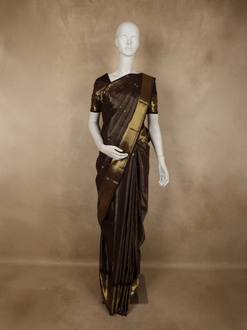 Wine Purple Checked Woven Pure Kanchipuram Silk Saree - Diadem