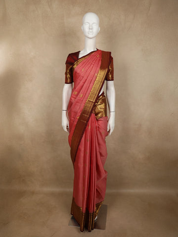 Red Checkered Woven Pure Kanchipuram Silk Saree - Diadem