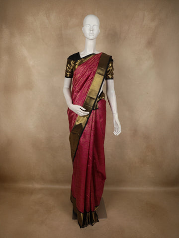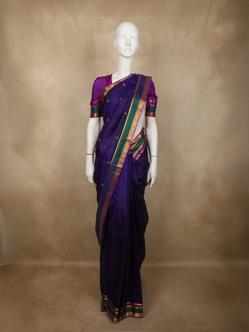 Violet Floral Motifs Pure Kanchipuram Silk Saree - Diadem