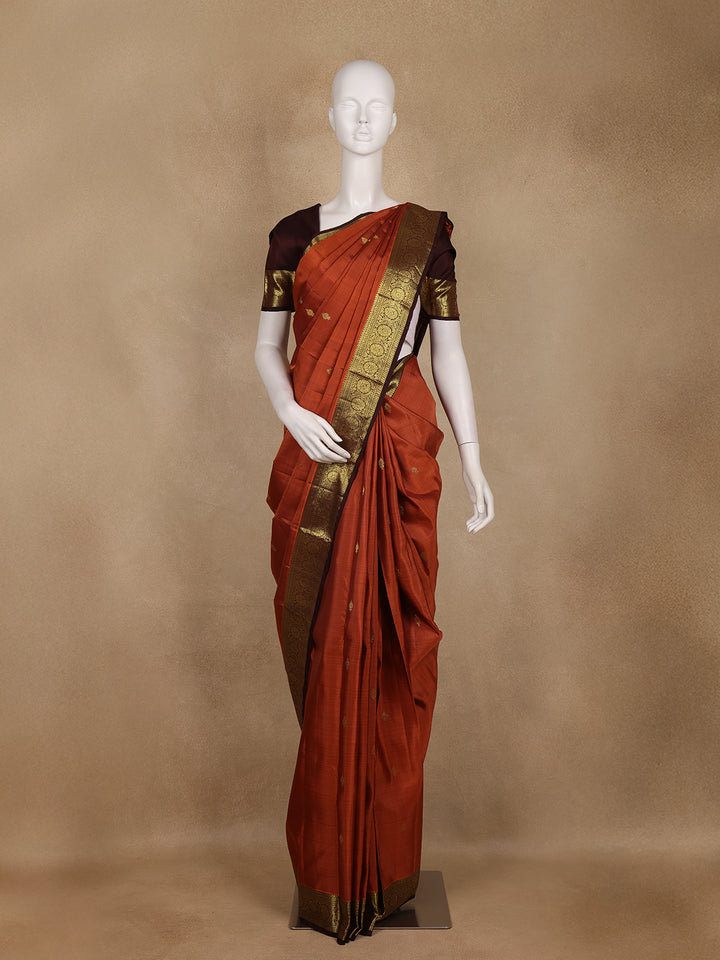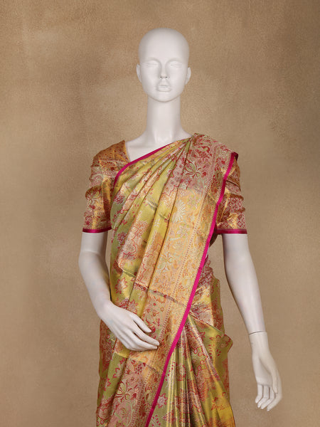 Golden Yellow Geometric Woven Design Pure Kanchipuram Tissue Silk Saree - Diadem
