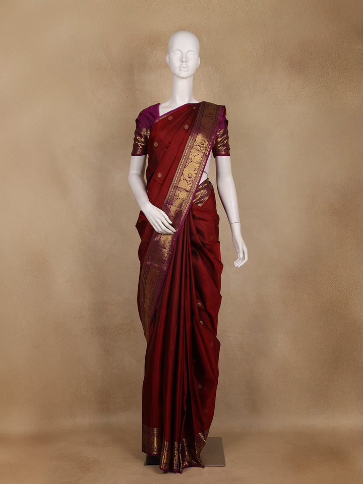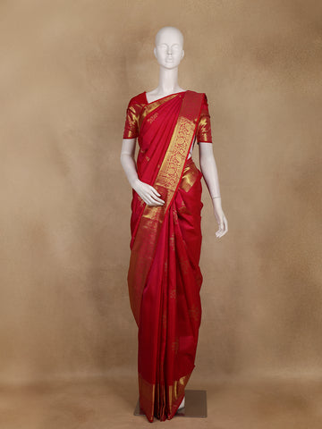 Red Checkered Woven Pure Kanchipuram Silk Saree - Diadem