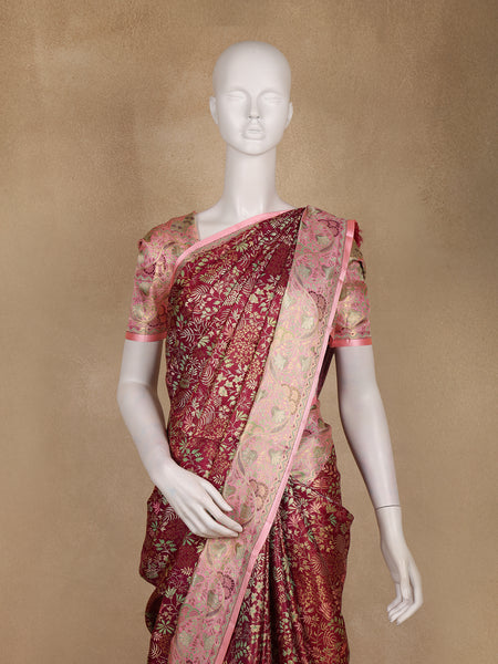 Lavender Floral Woven Pure Kanchipuram Silk Saree - Diadem