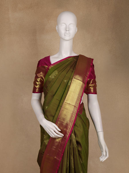 Green Paisley Design Pure Kanchipuram Silk Saree - Diadem