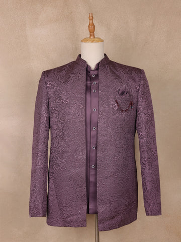 Take your pick from our wine cotton blend suit design for men, complemented by a matching tie and brooch.