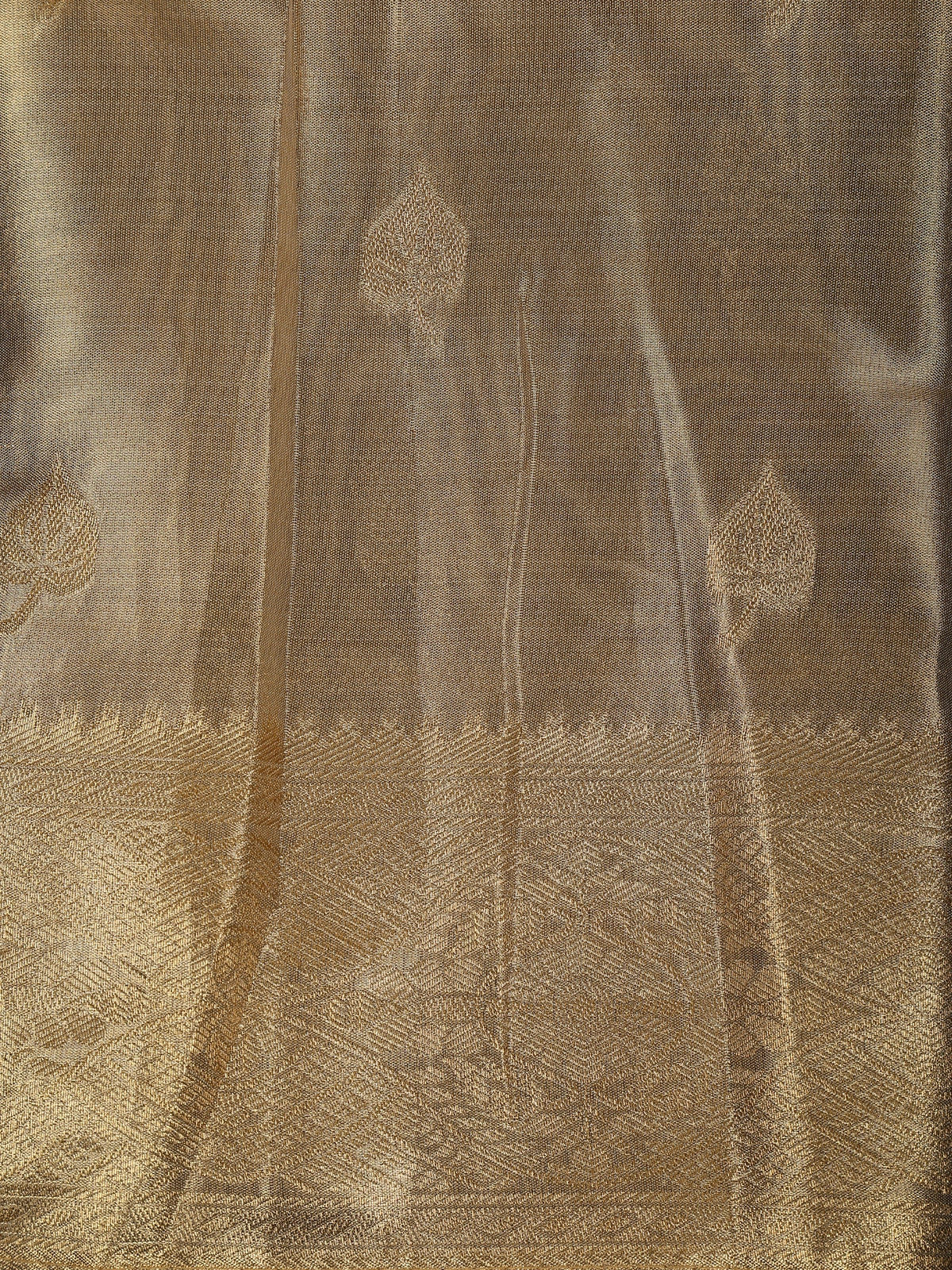 Antique Gold Beige Floral Zari Woven Design Tissue Silk Fancy Saree with Zari Border