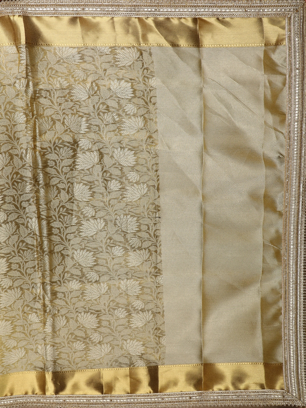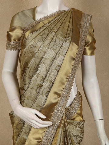 Antique Gold Floral Zari Woven Design Tissue Silk Saree with Designer Border
