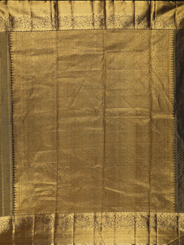 A finely crafted gold zari border frames the saree beautifully, adding structure and a classic temple-inspired finish. Woven in pure Kanchipuram silk, the saree boasts a luxurious texture, natural sheen, and an elegant drape that enhances its timeless appeal.