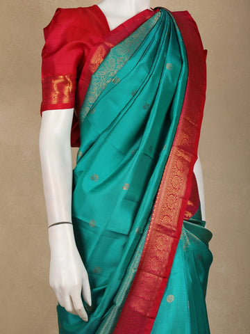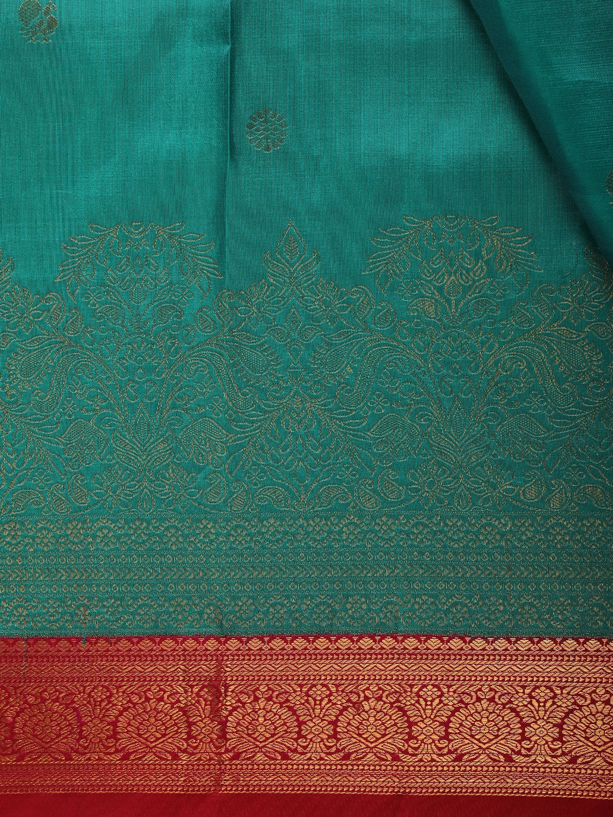 Aqua Blue Butta Zari Woven Design Pure Kanchipuram Silk Saree with Contrast Border