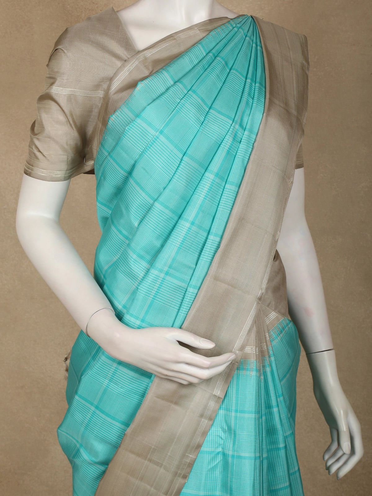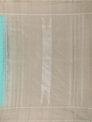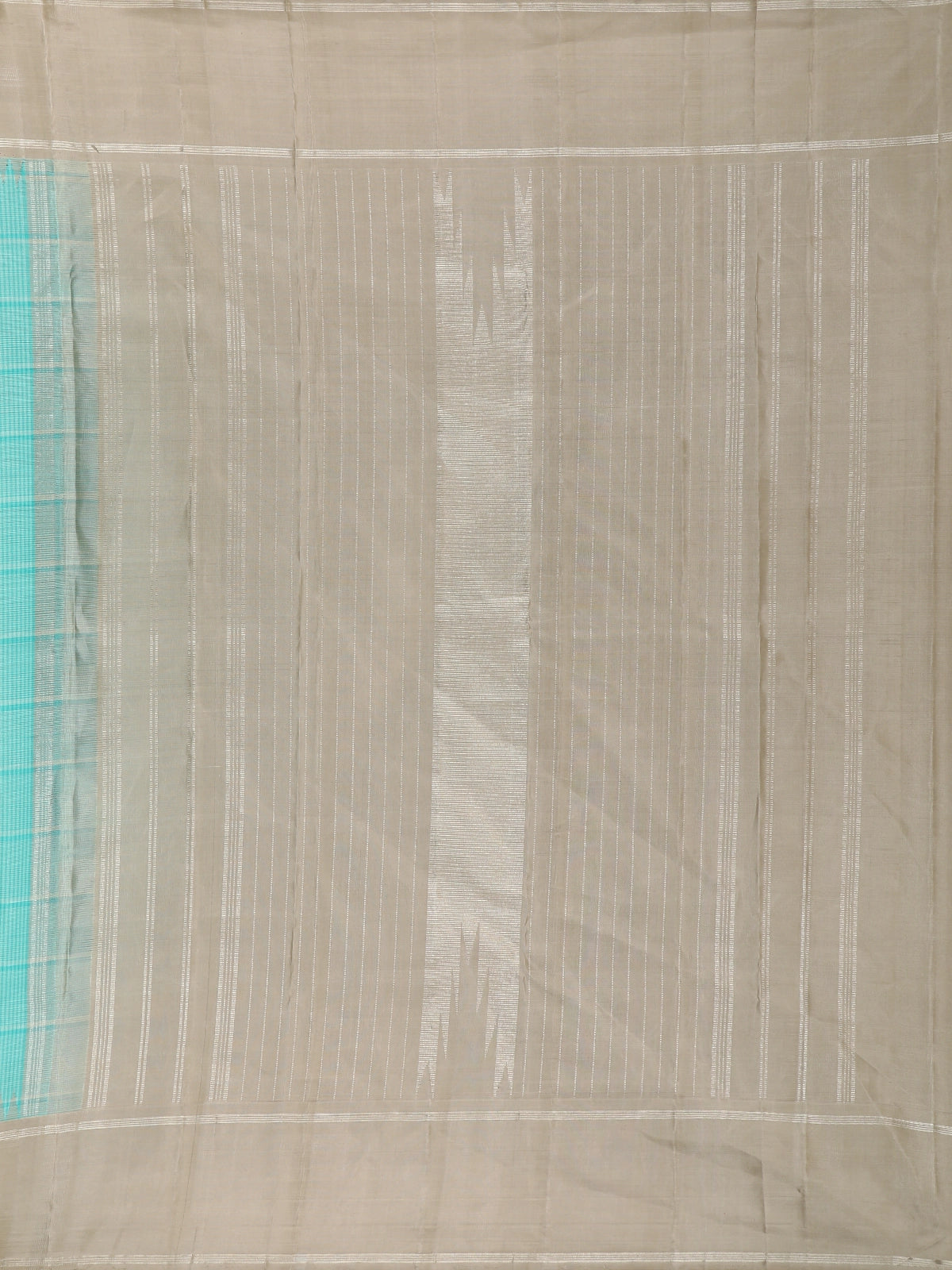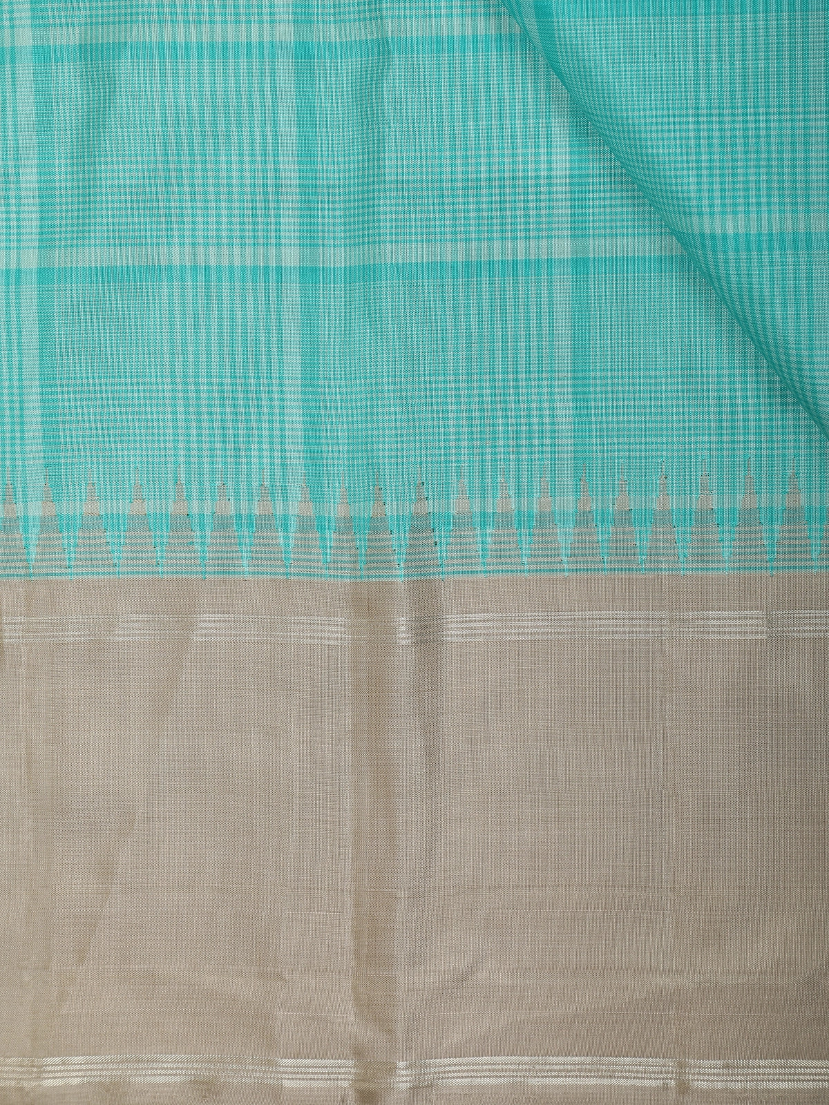 Aqua Blue Checked Design Pure Kanchipuram Silk Saree with Gold Zari Border