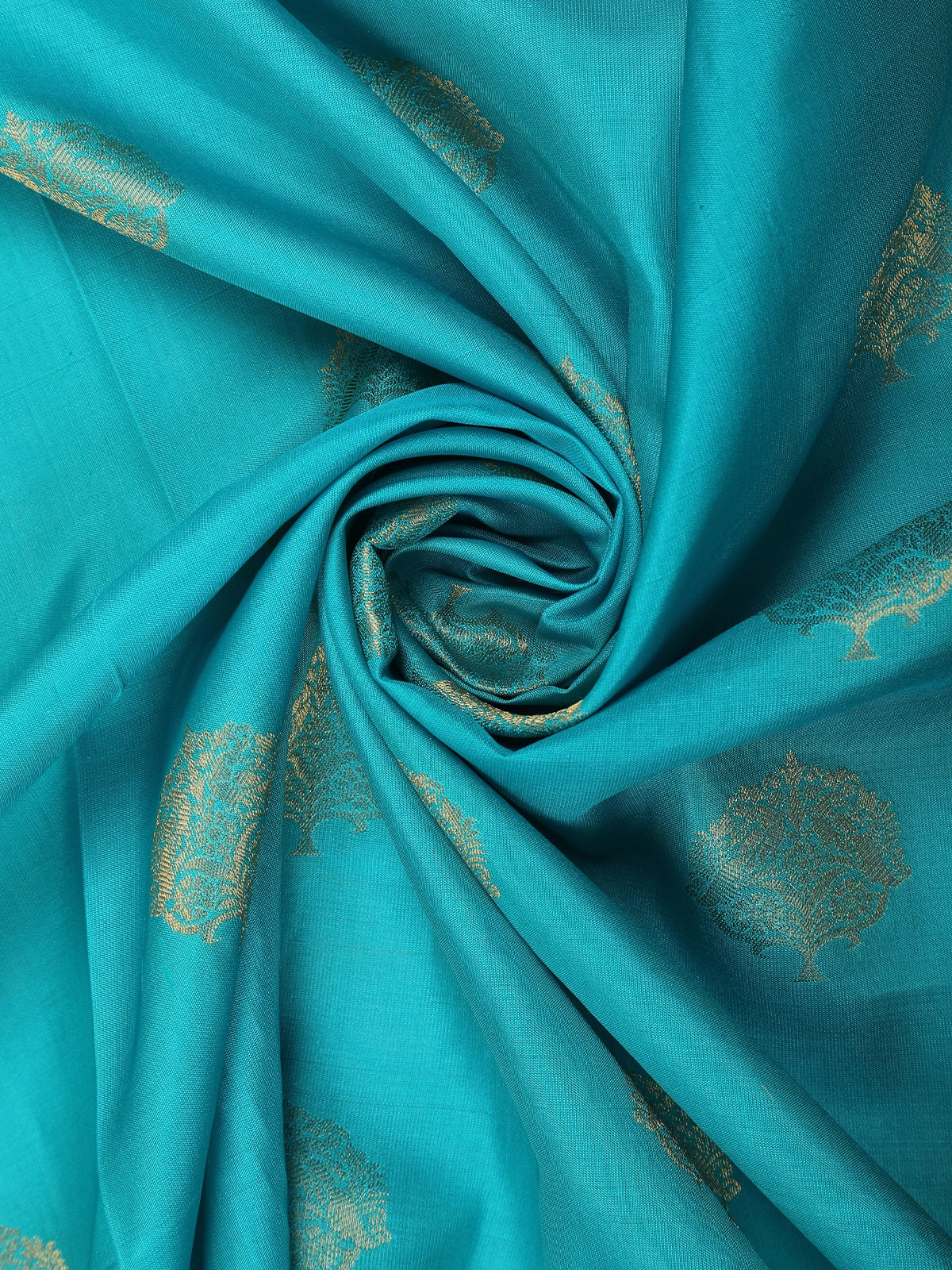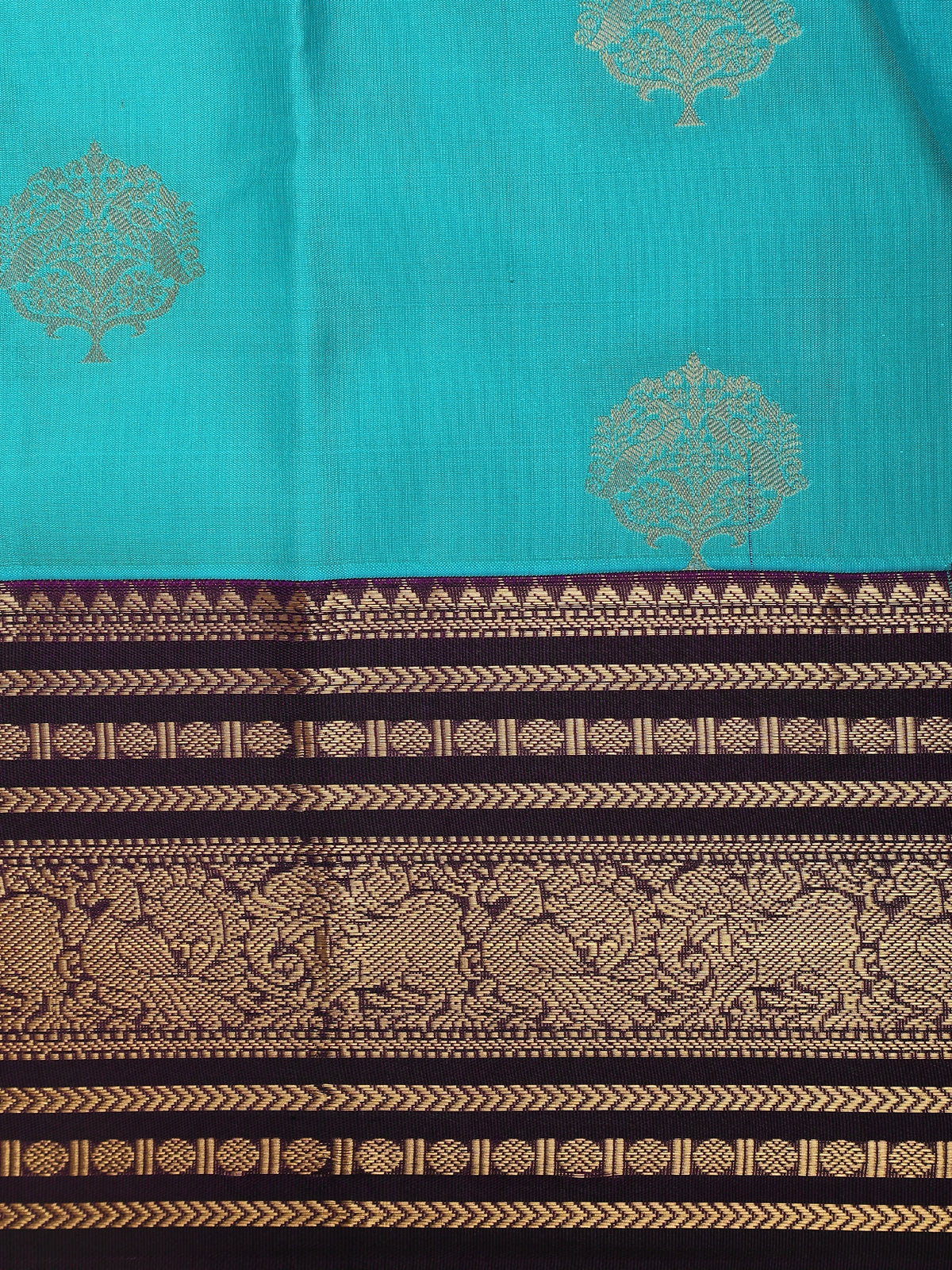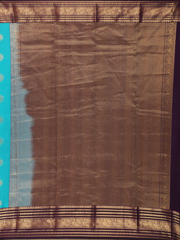 Aqua Blue Floral Butta Woven Design Pure Kanchipuram Silk Saree with Contrast Zari Border
