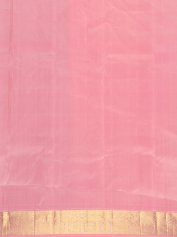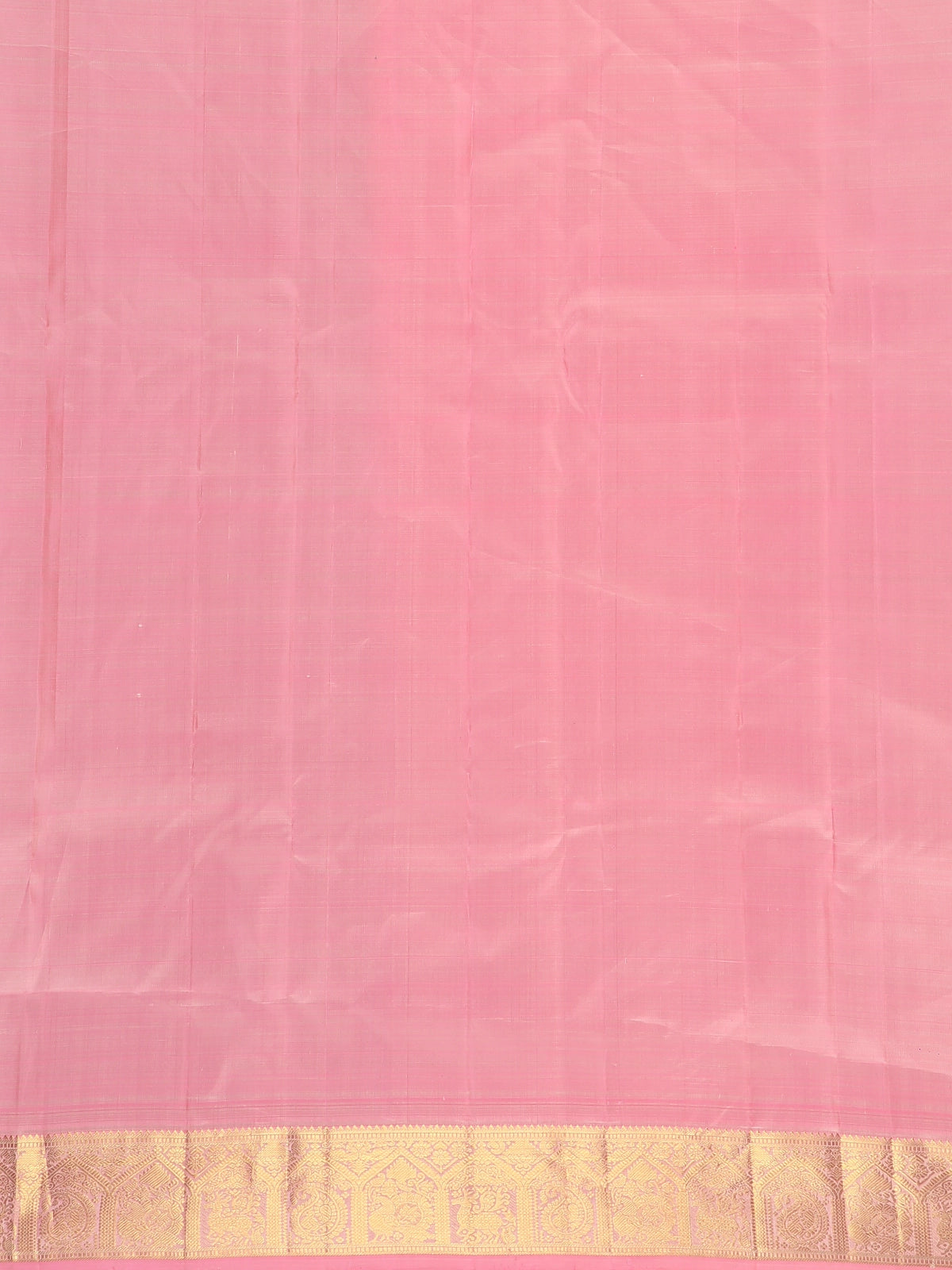 The saree is beautifully complemented by a contrast pink border enriched with detailed zari craftsmanship, enhancing its festive appeal. The richly woven pink pallu adds grandeur, making this saree a perfect blend of tradition and contemporary elegance.