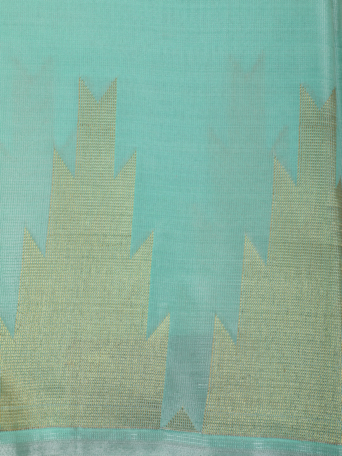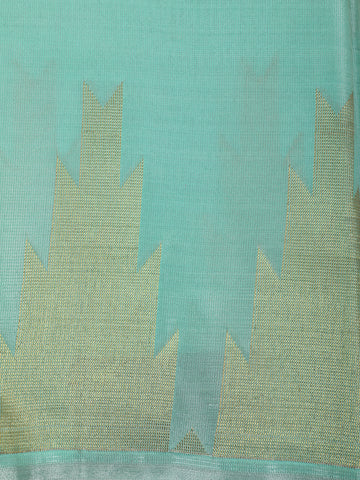 Aqua Blue Floral Butta Zari Woven Design Tissue Designer Saree with Temple Border