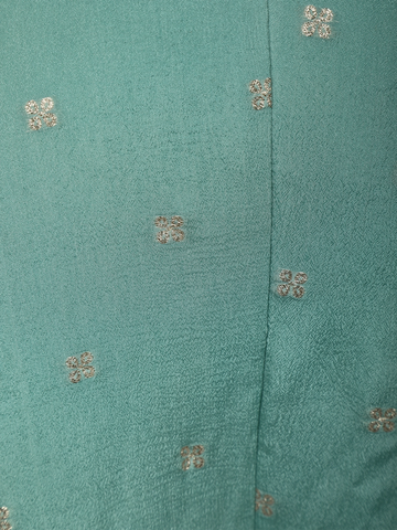 Paired with a matching aqua blue palazzo, the ensemble showcases a soft flow and scattered woven butta motifs that elevate its elegance. The lightweight georgette fabric ensures effortless comfort and movement, making it ideal for long celebrations. Perfect for festive occasions, mehendi functions, sangeet nights, and party gatherings, this palazzo suit offers a chic yet traditional look that stands out with ease.