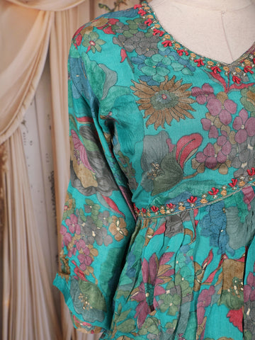 Aqua Blue Floral Printed Design Peplum Top Palazzo Suit with Dupatta
