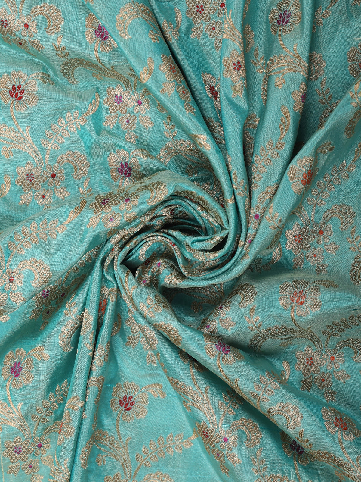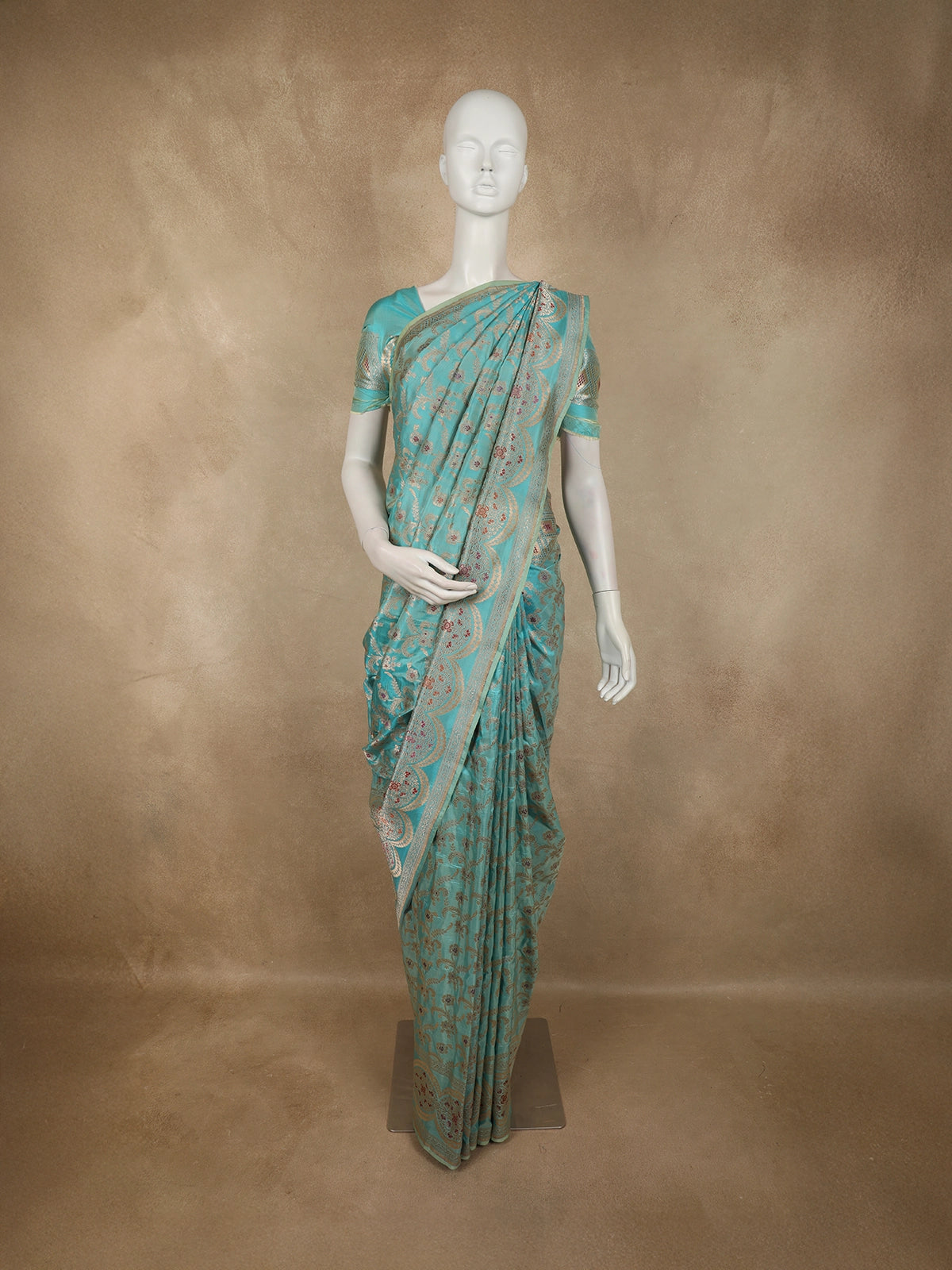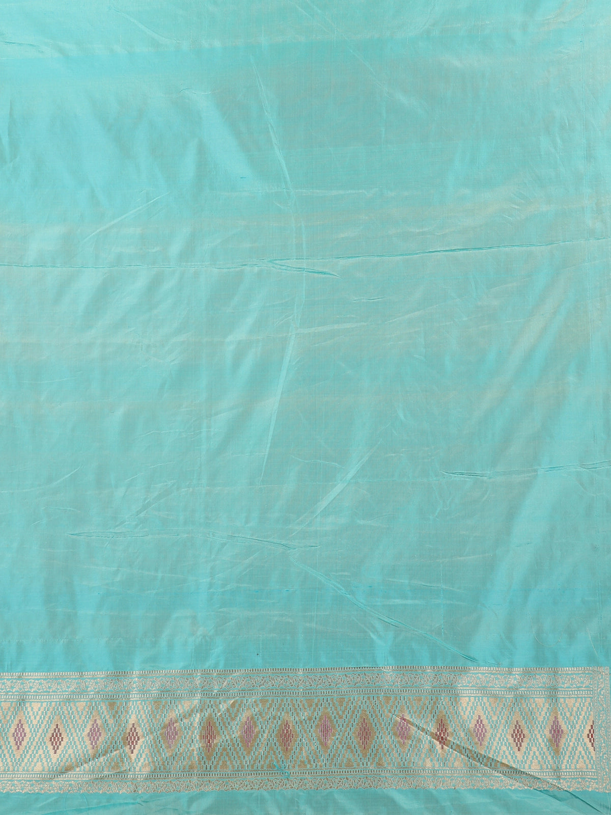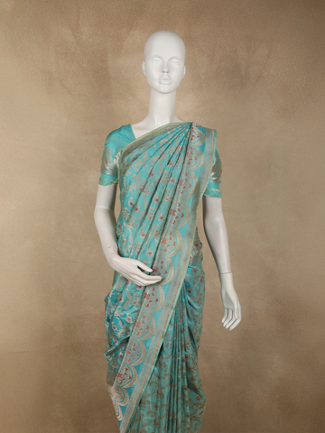 Aqua Blue Floral Zari Woven Design Pure Banarasi Silk Saree with Zari Border