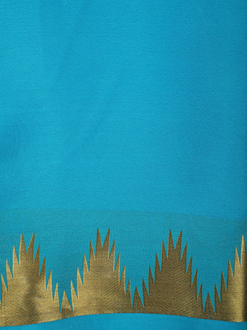 Aqua Blue Solid Woven Design Pure Mysore Silk Saree with Temple Zari Border
